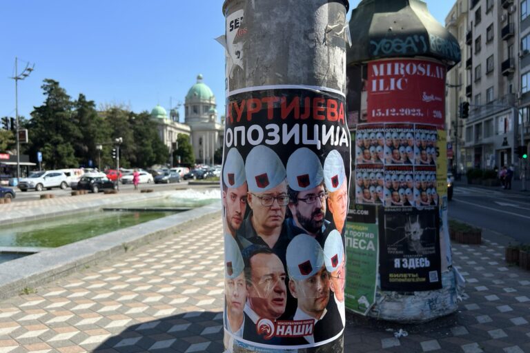 Конзервативни покрет „Наши“ излепио је плакате широм Београда „Куртијева опозиција“ на којима се налазе представници прозападне опозиције „Небојша Зеленовић, Мики Алексић, Здравко Понош, Павле Грбовић, Зоран Лутовац, Александар Јовановић – Ћута, Радомир Лазовић и њихов идеолошки вођа Аљбин Курти. Прозападна опозиција у Србији служи искључиво антисрпским интересима и њихове методе којима воде своју политичку борбу…