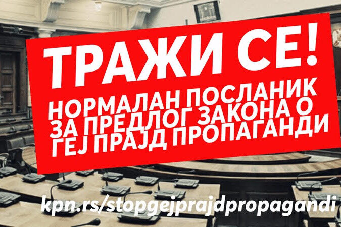 Конзервативни покрет НАШИ обавештава јавност да покреће велику акцију “Тражи се нормалан посланик!” која за циљ има да пронађе бар једног народног посланика у Србији који ће предложити “Предлог закона о забрани геј прајд пропаганде на територији Републике Србије” за усвајање у Народној Скупштини Србије. КП Наши су урадили Предлог закона којим се уређује општа…